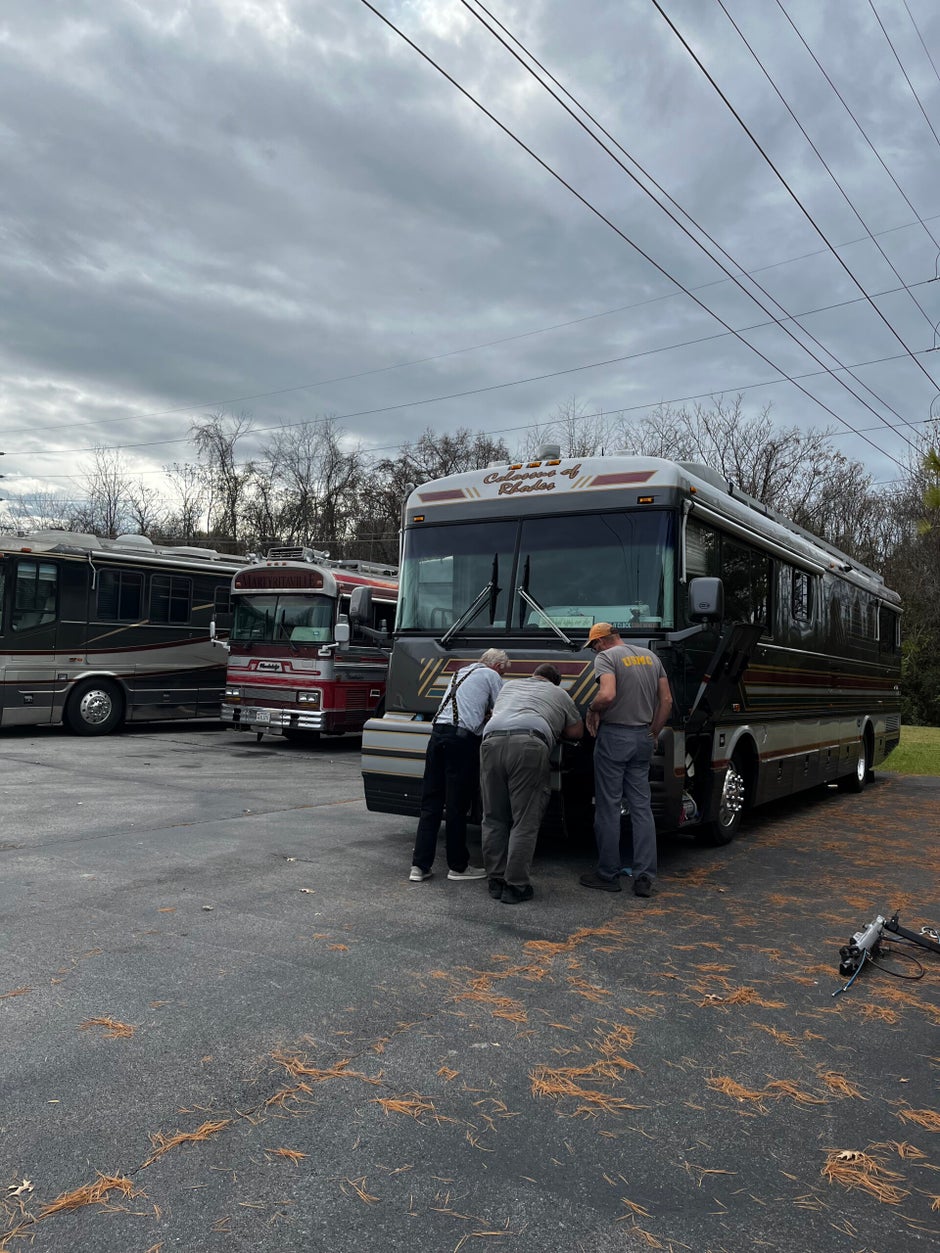We intended to stop at Wander Works just for Jim to meet Jason and Jeff and to pick their brains on a few things. As it turned out we had yet more electrical issues and after Jason made a house call out to see the bus, it was determined that a trip to the Wanderlodge hospital was in order. Jim and the “doctors” spent the better part of the day checking everything out and taking a test drive. Ride height adjusted, loosened the front brakes and diagnosed several issues. Translation, the bus needed lots of parts - all of which had to be ordered! So, it looks like we will be here a few more days.